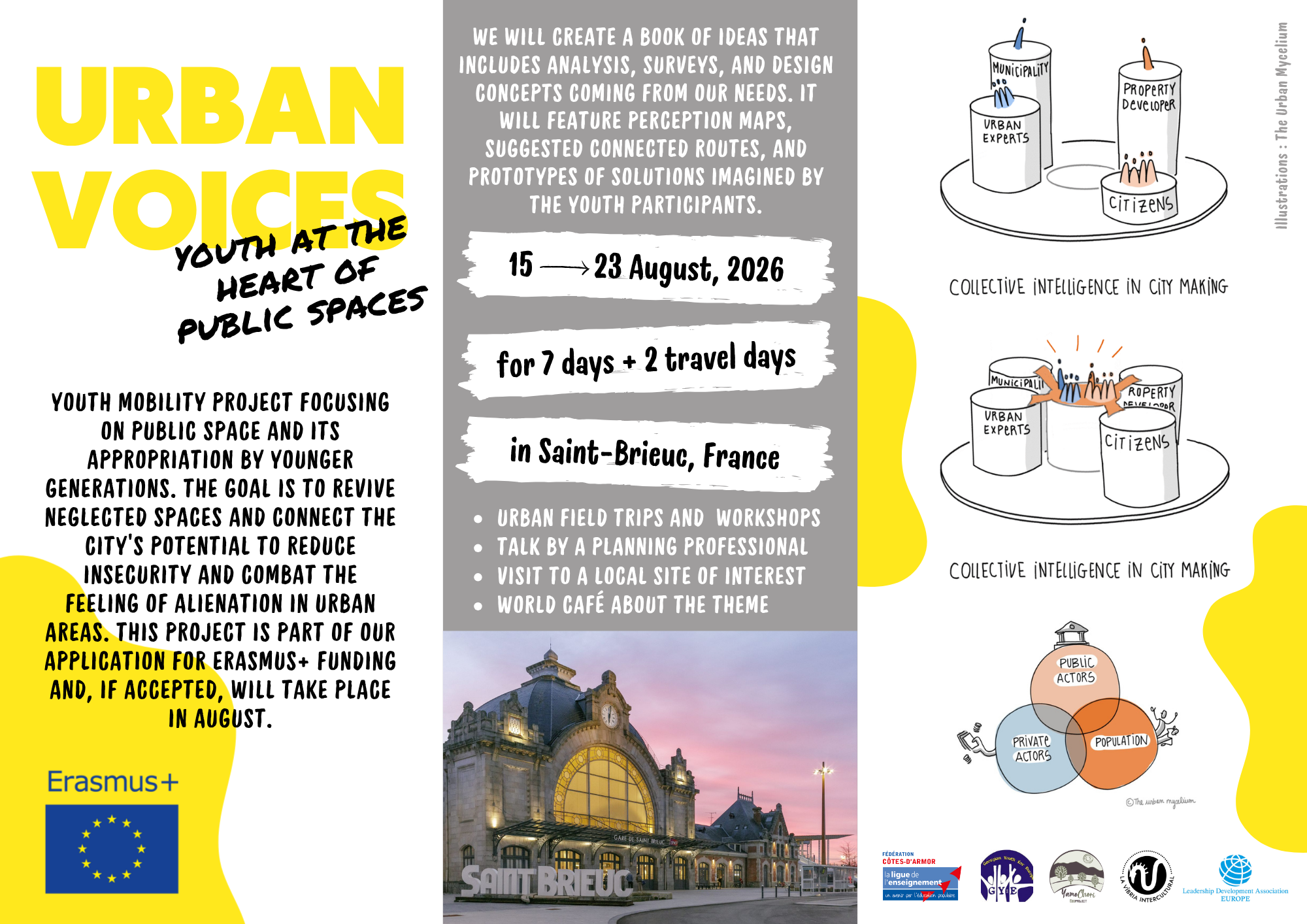 Workshops, et une étude des lieux publics à St Brieuc : qu’est ce qu’ils ressentent dans ces lieux et quels seraient leurs besoins pour les insvestir d’avantage.