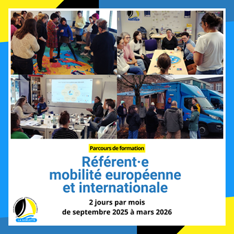 Le programme comprend un parcours de formation « Référent.e mobilité internationale », 3 formations, et une mobilité de professionnel.les